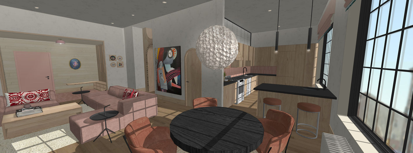 Designed for Julia, a busy filmmaker who works long hours and travels frequently but relishes spending her time off at home. A first-generation American of Polish descent, her new loft space in Greenpoint will be her home base, where she will occasionally work.