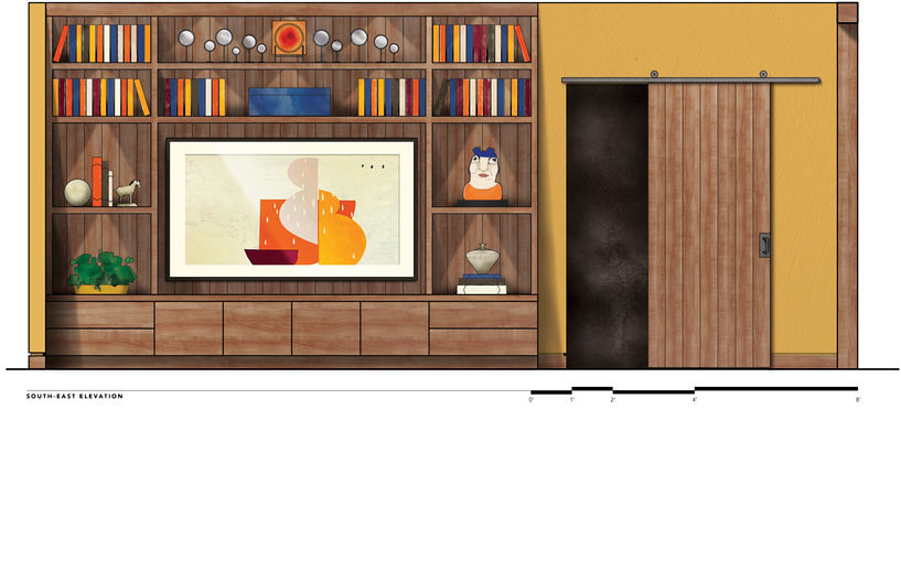 Vibrant Big Sky Chic combines the beauty of nature with modern simplicity while maintaining the level of energy and personality of the family. Imagine clean lines, laid-back comfort, and a cozy feel of Montana's mountain style with color, pattern, and contemporary art set against stone, metal, and wood to create a space with a sense of place and meaning for the Doss Family.